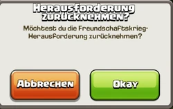 Möchte man diesen Clan herausfordern oder man hat schon eine Herausforderung an einem anderen Clan geschickt (oder der eigene Clan befindet sich schon in einem Krieg), dann erscheinen folgende Nachrichten: