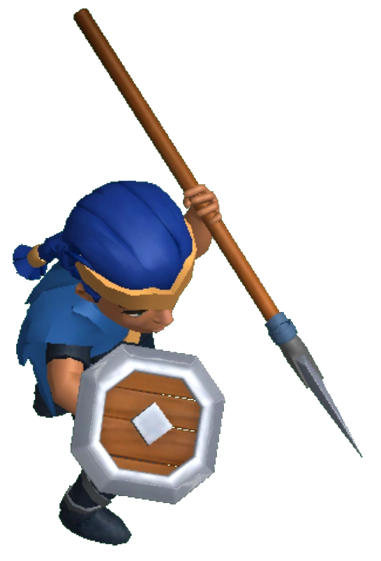 Der Schlachtruf, welcher ertönt, wenn man sie im Heimatdorf antippt, klingt oft "zweifach", sodass der Ton stärker klingt als bei den anderen Helden.