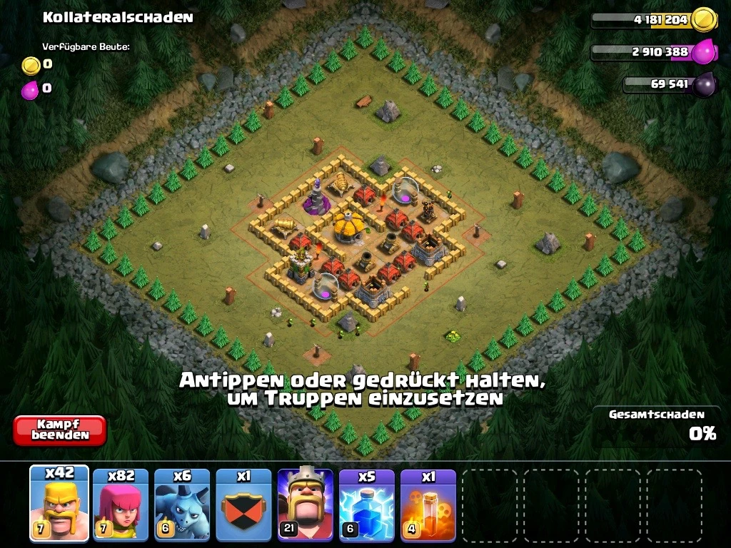 Truppen: 30 Barbaren, 50 Bogenschützen, 1 Ballon