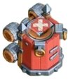 • Auf den ersten Blick sieht der Truppenwerfer aus wie ein Wohnwagen mit rotem Holz als Schutzschild und Holzfässern mit Eisenbändern und Bolzen als Räder. Oben befinden sich runde Metallringe und in der Mitte der Plattform eine Springfalle, die der Push-Falle mit einem weißen „X”-Zeichen ähnelt, außer dass sie sich in verschiedene Richtungen drehen kann. Wenn sie zum Angriff ansetzt, erscheint ein Fass auf der Sprungfalle, bevor sie es in die Luft schleudert und das Fass auf die Gruppe mit dem meisten Wohnraum fällt.