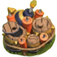 | Niveau | Dégâts de l'explosion | Portée des dégâts | Coût du réarmement | Coût de l'amélioration | Temps de l'amélioration | Expérience | Hôtel_de Ville |