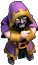 - Le sorcier est très similaire aux Archers, car il utilise une attaque à distance et peut tirer sur les murs. Il tire des boules de feu ou de foudre (aspect purement visuel) qui infligent des dégâts élevés, mais il nécessite un soutien car il a des points de vie relativement faibles et peut facilement être tué par les défenses. Il est le plus couramment utilisé dans les attaques de masse.