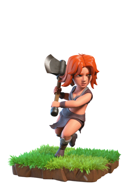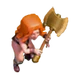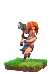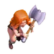 "Maîtresse de la hache à deux mains, cette illustre guerrière se précipite entre les bâtiments avoisinants pour décimer plusieurs ennemis ou bâtiments d'un coup avec sa terrible attaque tourbillonnante"