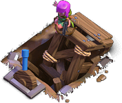 Erre az ikonra koppintva az íjásztorony azonnal felfejlődik a következő szintre, cserébe egy épületek kalapácsáért (ha rendelkezel ilyen varázstárggyal). Ha az íjásztorony már elérte a maximális szintet, ez az ikon nem jelenik meg.