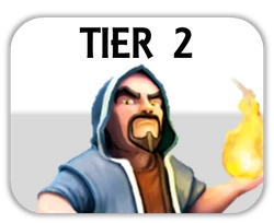 Tier 2 troops are neither as strong as Tier 3, nor as weak as Tier 1. Tier 2 troops are much more specialized then Tiers 1 and 3, providing Wall Breakers for breaking through walls, Wizards for firing & lightning power and Giants and Balloons to take down defenses. Balloons are also the first flying unit available in the game. These troops form the backbone of many because they are stronger than Tier 1 allowing for them to not be destroyed instantly, while not as exorbitantly priced as Tier 3.