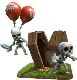 - Skeleton Traps set to defend against air troops have wings instead of a skull on the face of the coffin. Skeletons that arise from being triggered while set to defend against air troops float through the air with the aid of two small red balloons, the same balloons as those on the Air Bomb.