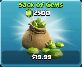 Gems are the premium in-game currency used to advance players' villages. When players first download the game they begin with 500 Gems (250 of which you are forced to use during the tutorial, and another 8 if you rush the buildings and troops when prompted). Additional Gems can be earned in-game by completing Achievements or clearing Obstacles or purchased with real money. Gems can be used in several ways: