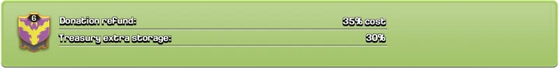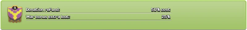 - Donation refund: This perk allows the donator to receive a refund (certain percentage of the cost) when their troops and spells are donated. The percentage is increased three times: at Clan levels 3, 6 and 9.