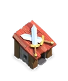 - At level 2, the Barracks gains a pair of archery targets on the side of the structure (complete with several arrows stuck in the targets as well as the side of the building) and a sword rack by the door holding a pair of Barbarian swords. The archery target represents the Archer, unlocked at this level.