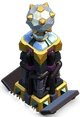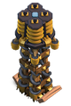 - На уровне 7, катушка заменяется набором массивных горизонтальных бронзовых колец, а её основание становится круглым. Структура здания заменена меньшим, но более толстым деревом, а нижняя часть имеет большую золотую опору. Конец металлических проводников становится темнее и там, где они прикрепляются к основанию, вместо бугорка, её окружает квадрат. Три меньшие катушки проволоки на опорах башни исчезают и заменяются очень толстой катушкой проволоки, идущей вверх по передней опоре. Когда она стреляет, кольца светятся ровным синим светом.