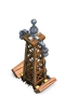 - Когда первоначально построена, верхняя часть башни имеет деревянную платформу, с металлическими катушками и металлическим конусом со сферой сверху, выступающей с платформы, с каменной опорой поперечной формы и проволокой, соединяющейся с задней правой опорой. Поле Башни состоит из высокой, стройной деревянной решетчатой конструкции с проволокой, намотанной вверх по правой колонне.