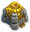 Gold is a resource that is dug up by the Gold Mines. Once collected, it will be stored in your Gold Storages. The amount of gold you have is displayed at the top right side of the screen. Gold is used to build and upgrade Defensive Buildings, Traps, Elixir Collectors, Elixir Storages, Walls and Workshop. It is also used to place many Decorations.