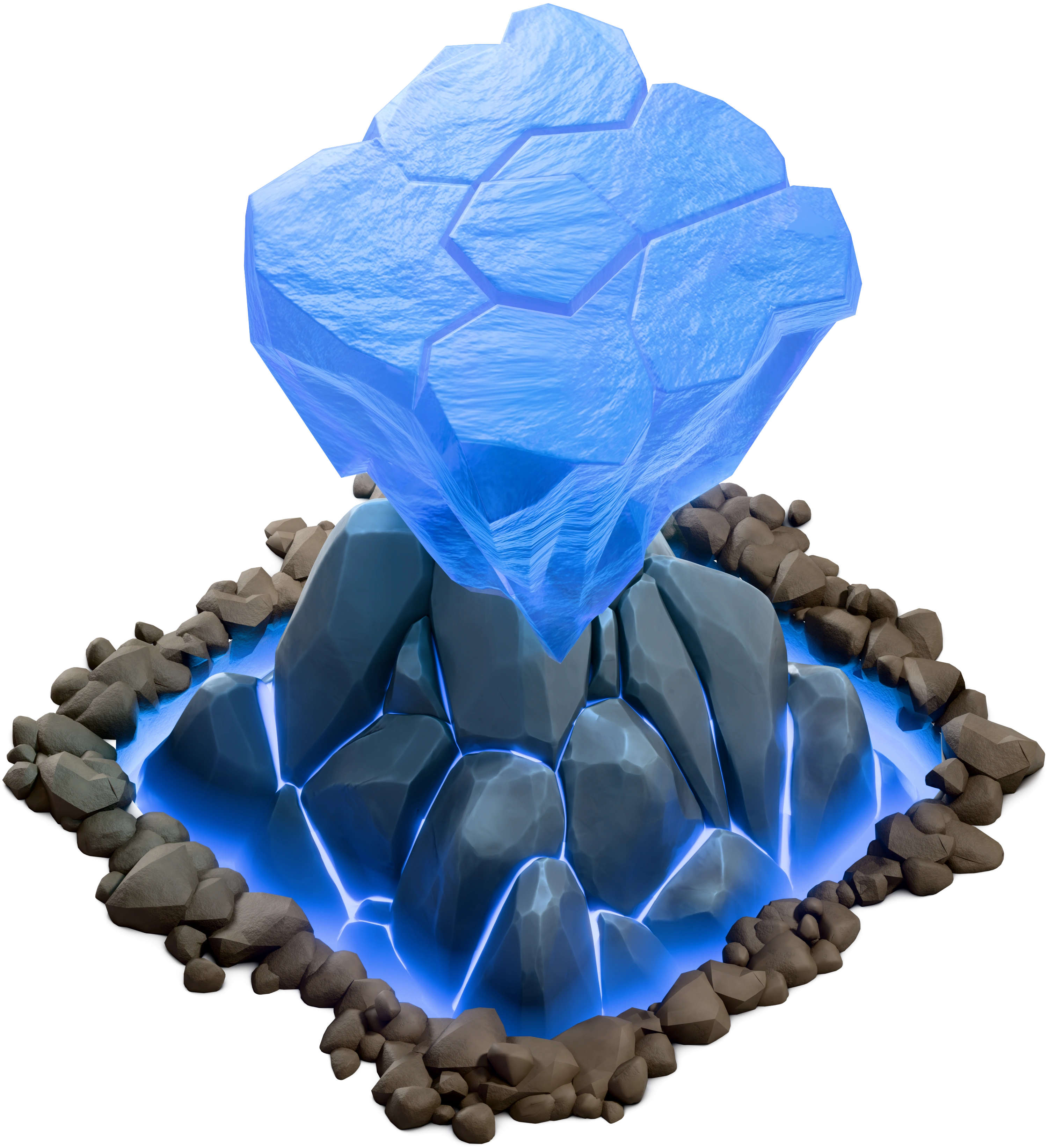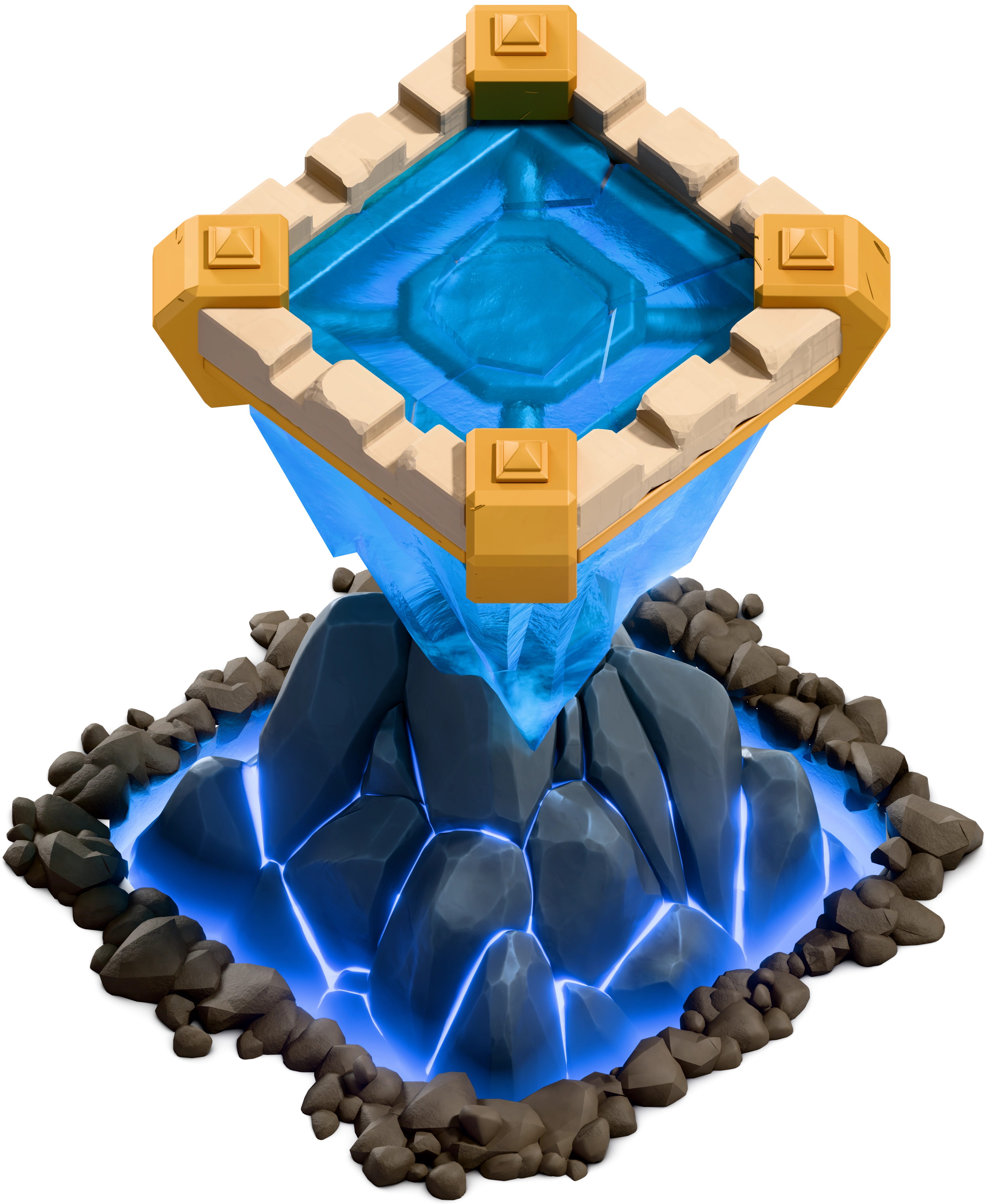 - When constructed, the meteor pyramid is much taller. An inverted pyramid blue crystal with some cracks on the top face appears, similar to the purple crystal of the Wizard Tower, which floats over the meteor base, becoming the platform the Super Wizard stands on. A windy effect can be seen blowing around the floating blue crystal.