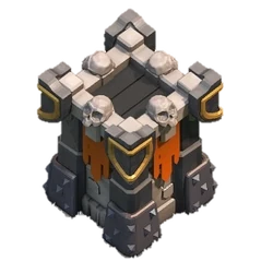 - 箭塔可以在惊人的距离外瞄准地面和天空的敌人,所以通常把它们放置在基地的外围是比较理想的,因为这样的话可以让玩家最大化箭塔在攻击距离上的优势并对其他防御建筑提供较好的掩护。由于箭塔同时拥有对地与对空的能力,将其他防御放置在最少一个箭塔的攻击范围内将会是一个不错的策略。